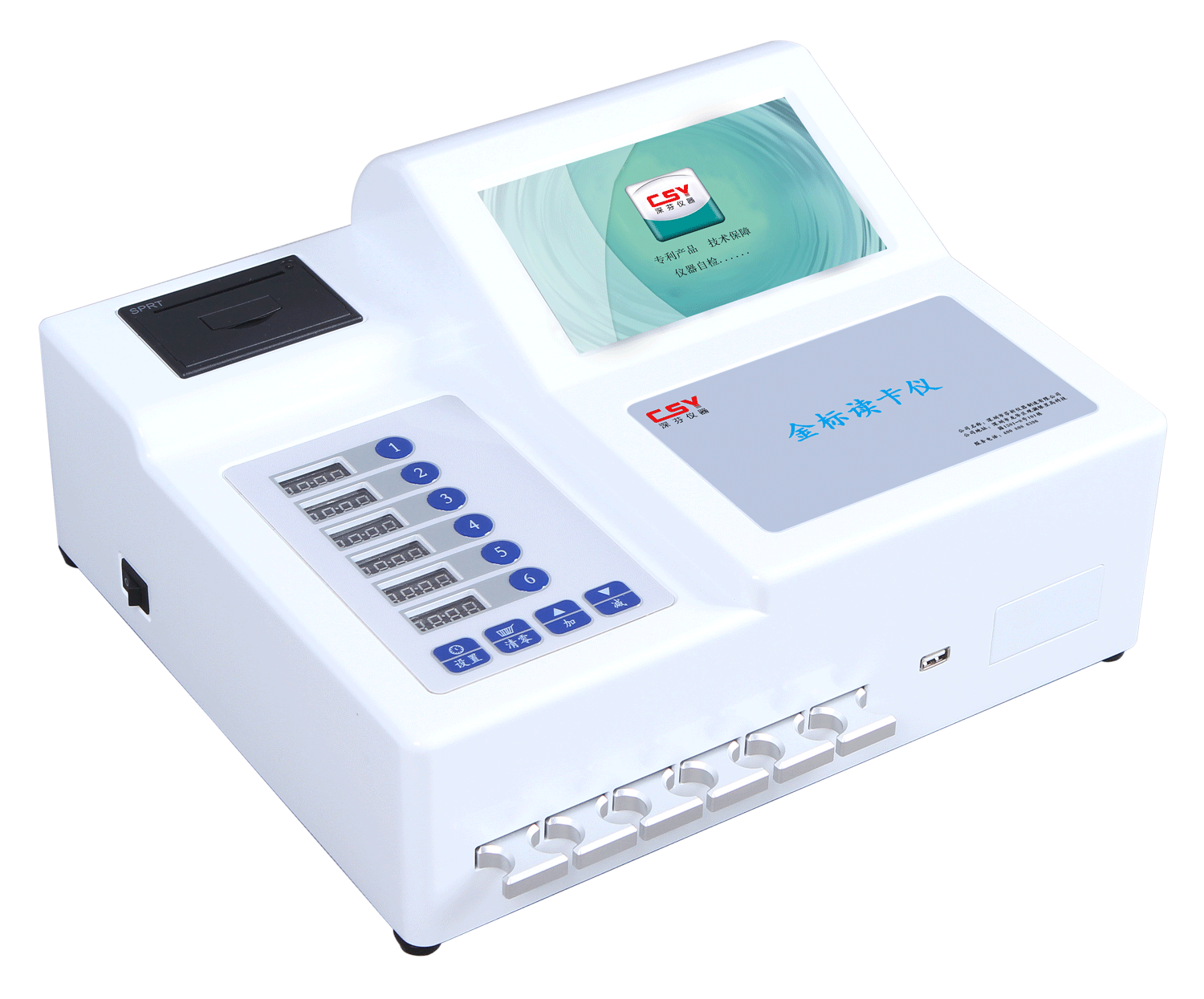膠體金分析儀CSY-JA食品藥品膠體金分析儀可以快速檢測(cè)膠體金法制成的獸藥、瘦肉精、抗生素、動(dòng)物疫病等快速檢測(cè)卡。
